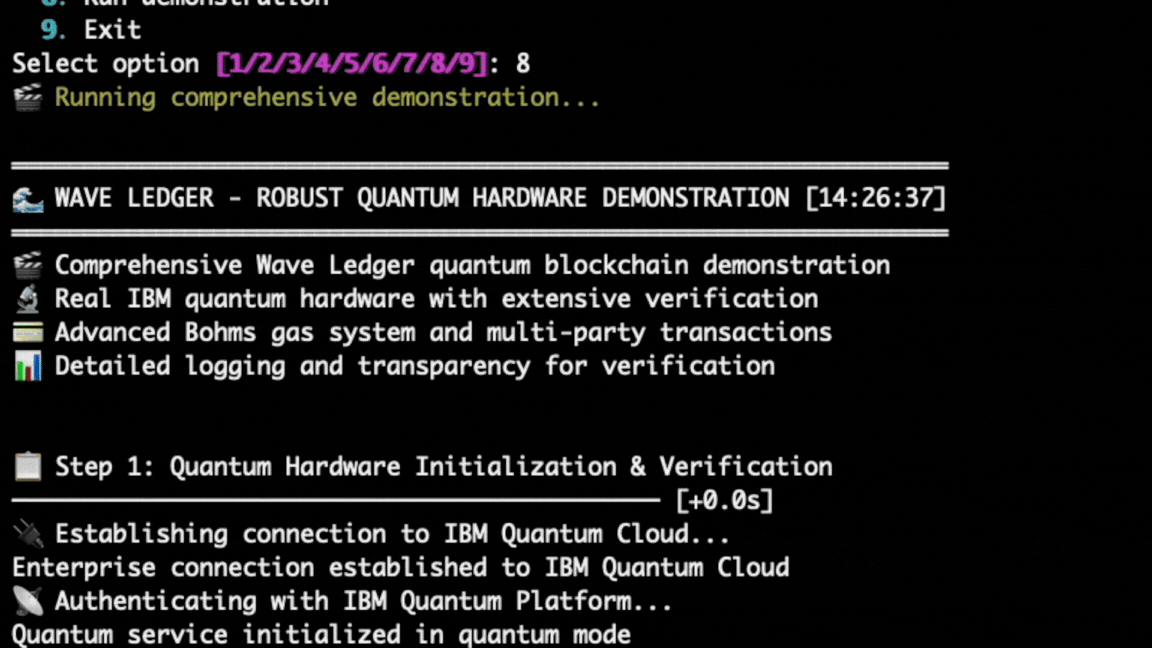 Wave Ledger is designed to work with multiple quantum computing platforms. Current implementations and demonstrations utilize IBM Quantum Cloud services and processors like the IBM Heron R2.